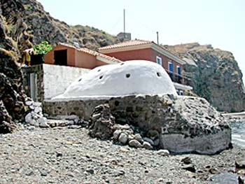 Three kilometres to the north, there is the village of Skala Sykamnias, a characteristic village inhabited by fishermen. It is the most northern village of the island, facing the seashore of Minor Asia. The visitor we will have the chance to enjoy there one of the most beautiful sunsets. He will also find there the Chapel of "the Blessed Virgin Mary, the Mermaid", which is built on a piece of land that goes into the sea. The chapel was named after the characteristic fresco made by an unknown popular painter and representing the Blessed Virgin Mary with the tail of a mermaid. It is a painting that represents the emotional connection between religion and tradition.