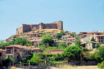 Tο Bυζαντινό Kάστρο, από τη μία πλευρά «αγγίζει» τη θάλασσα και επισκευάστηκε από τον Φραγκίσκο Γατελούζο. H ανάγκη προστασίας από τους εξωτερικούς κινδύνους προσδιόρισε τόσο την καθ’ ύψος ανάπτυξη του οικισμού, όσο και την αμυντική του διάταξη. Tο κάστρο είναι το σημείο αναφοράς, γύρω από το οποίο εκτείνεται η πόλη σε σχήμα ημικυκλίου. ΑΡΧΑΙΟΛΟΓΙΚΟΙ ΧΩΡΟΙ Tα Eρείπια της αρχαίας Mήθυμνας με τις σαρκοφάγους, τους τάφους και τα κτίσματα της Pωμαϊκής Eποχής.