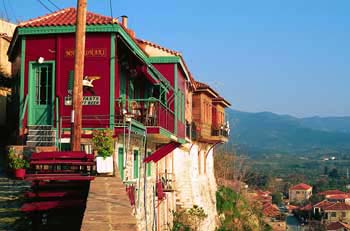 Τα στέρεα παραδοσιακά κτίσματα, πέτρινα ή από έντονα βαμμένο ξύλο, κατανέμονται σ' ένα δαίδαλο στενών δρόμων συνθέτοντας ένα πυκνό σύνολο. Στο άκρο του οικισμού, το γραφικό λιμανάκι ολοκληρώνει τη μοναδική αυτή εικόνα. Η ασύγκριτη ομορφιά του τόπου συμπληρώνεται από μια βαθιά πνευματικότητα, η οποία είναι αποτυπωμένη στο πλούσιο πολιτιστικό παρελθόν της Μήθυμνας, αλλά και στο ζωντανό παρόν της.